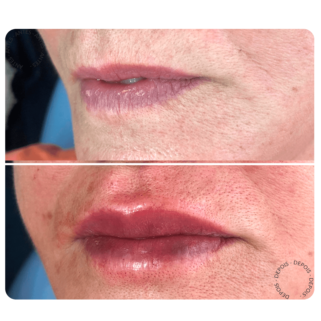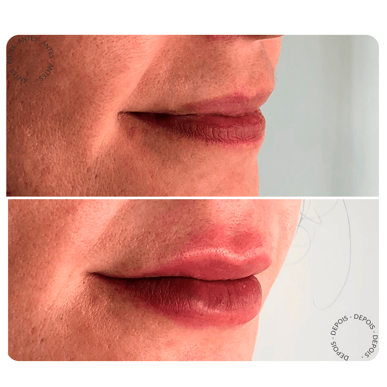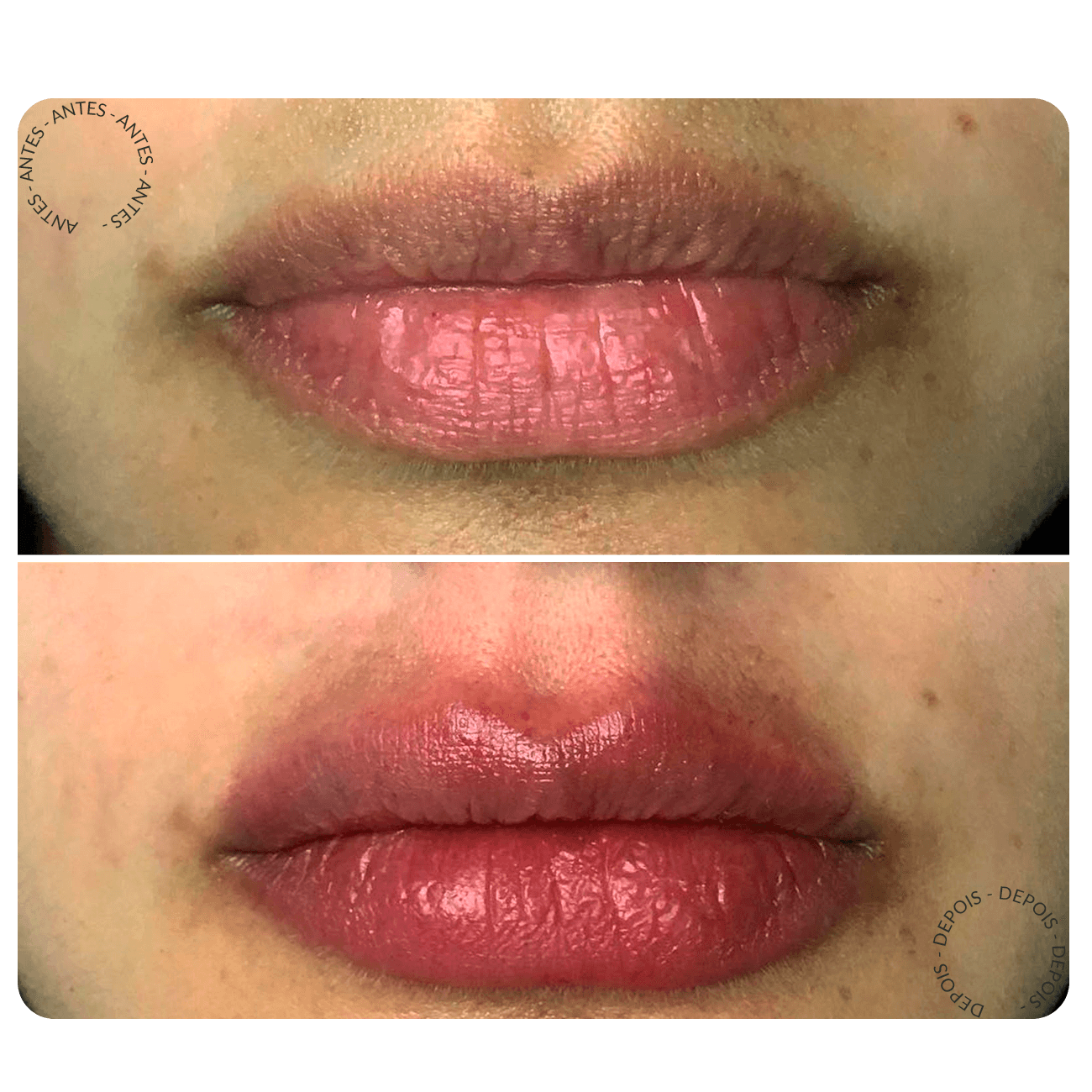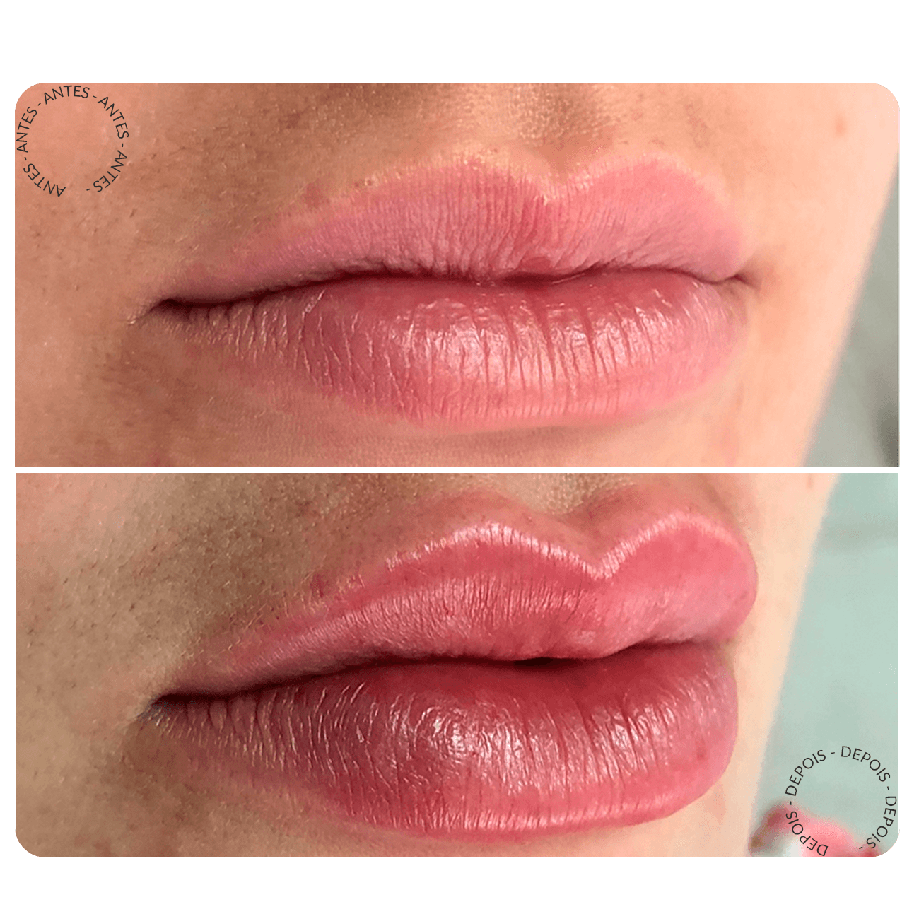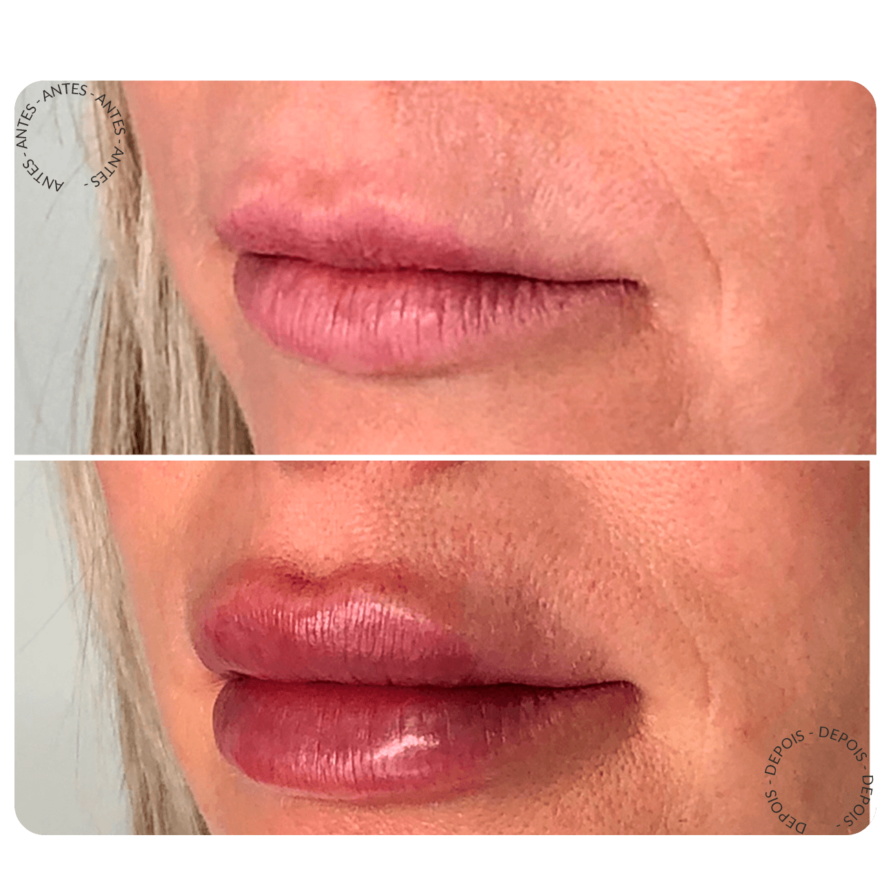 Preenchimento labial aumenta volume, define contorno, melhora simetria e proporciona naturalidade.